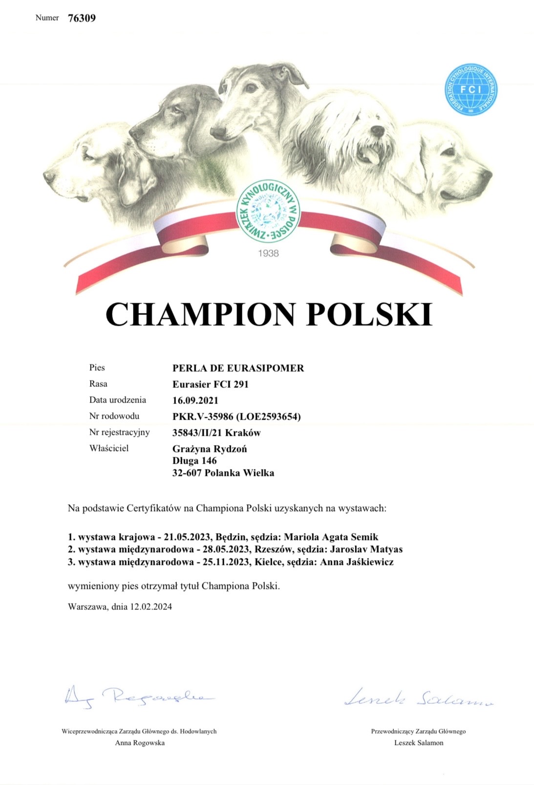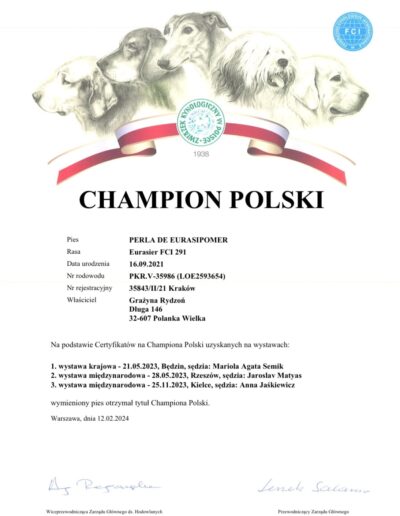 Gratulujemy wszystkim uczestnikom reprezentującym rasę Eurasierów, a gościom z Danii zwycięstwa